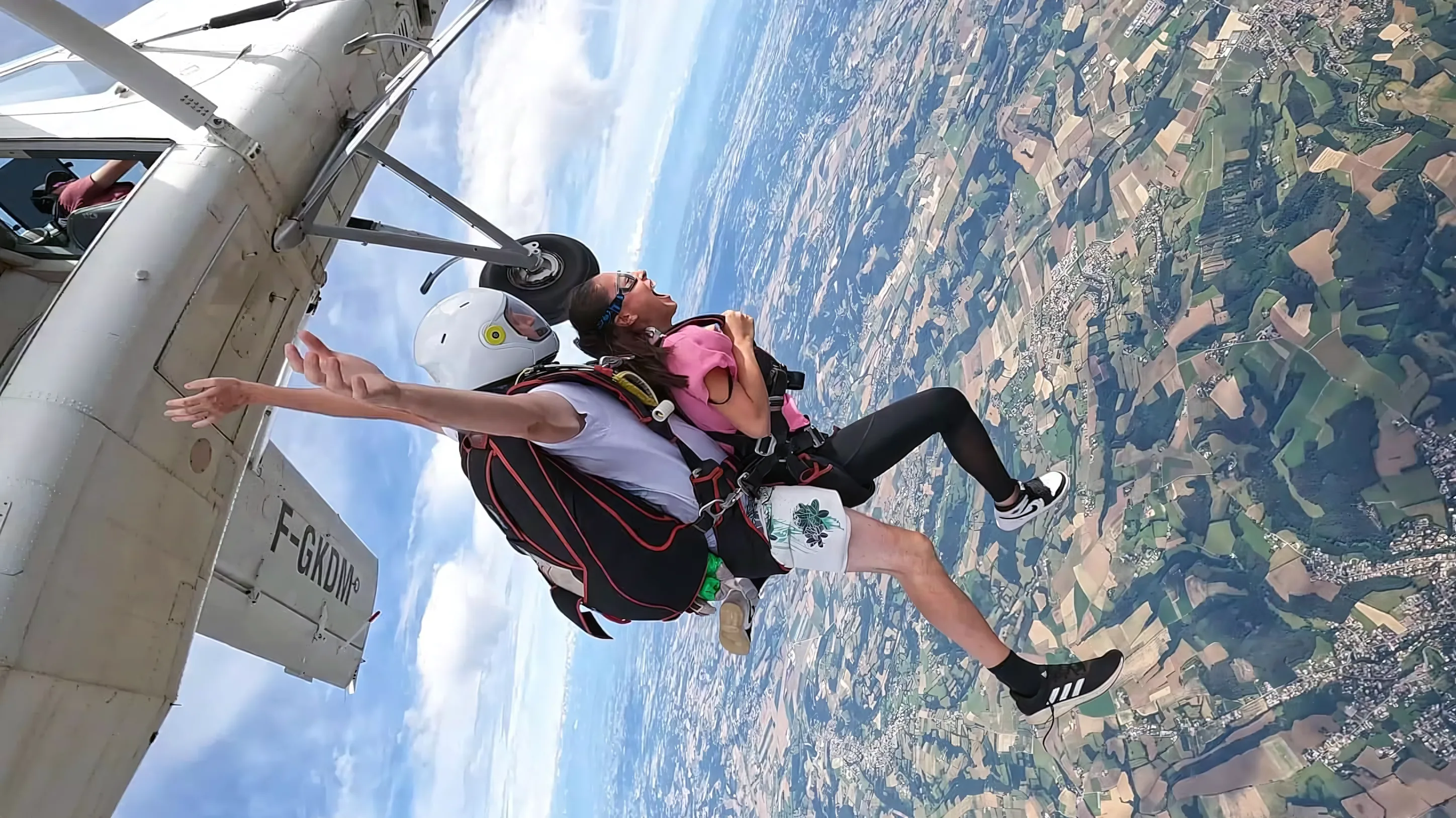 Après un quart d’heure de formation, c’est la montée en avion : le Pilatus nous emmène à 4000 mètres en une douzaine de minutes. La porte s’ouvre et vous voilà parti pour 50 secondes de pure adrénaline à 200 km/h ! A 1500 mètres de hauteur, le moniteur ouvre le parachute.